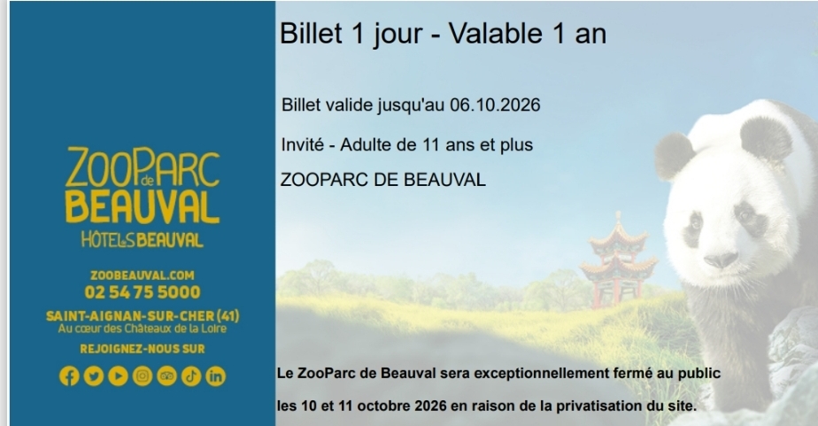 4 places 2 adultes et 2 Enfants pour le zoo de beauval