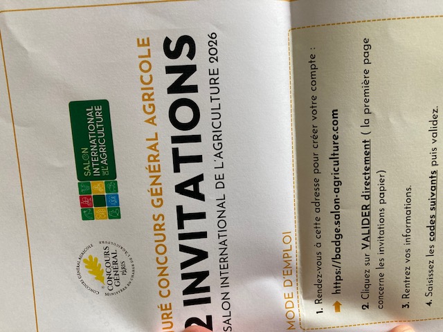 deux invitations pour le salon de l'agriculture 2026