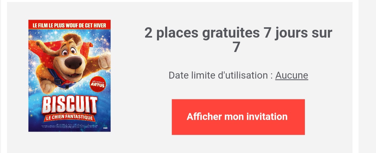2 places de cinéma pour le film d’animation : Biscuit Le chien fantastique .