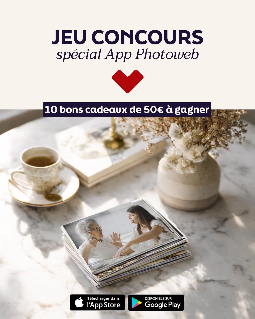 1 bon cadeau de 50€ à utiliser sur l’application Photoweb