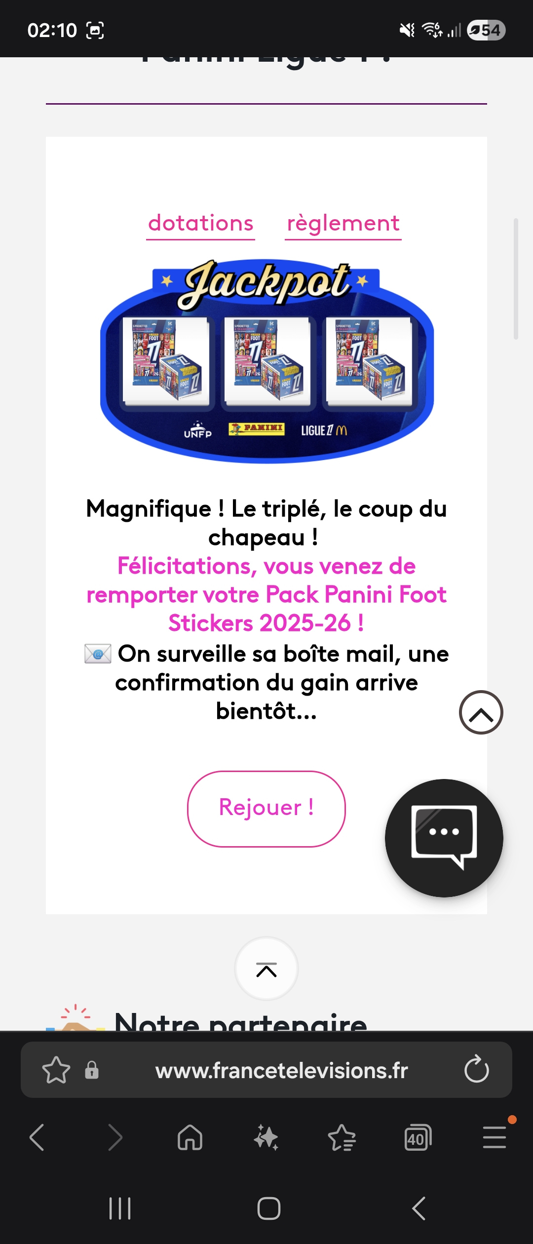 « Surprise en ouvrant la boîte aux lettres, je n’ai pas été informée et je n’ai pas souvenir d'avoir participé à un jeu concours pour ce gain »